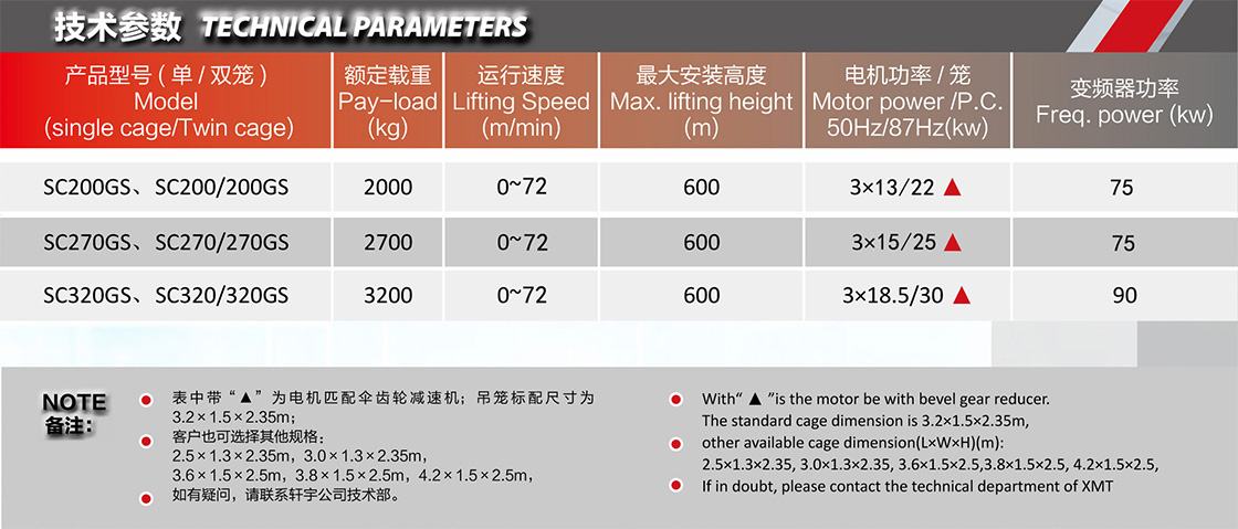 主要特點(diǎn)1. 三傳動(dòng),金欣電機(jī)減速機(jī);2. 偉創(chuàng)變頻器;3. 可適用于需較大噸位、大尺寸吊籠等項(xiàng)目。